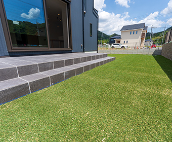一年中きれいな緑を楽しめる人工芝。雑草対策にも最適で、お庭や店舗などにおすすめ。下地から丁寧に施工し、美しく長持ちします。